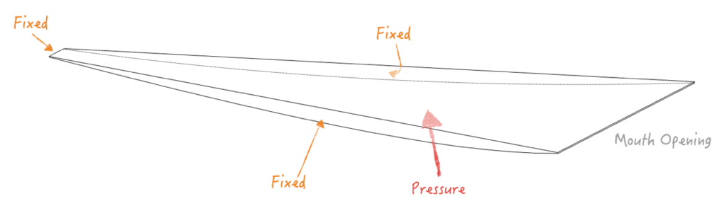 - Deflection Zone: max. deflections typically occur at the mouth where the span is largest.